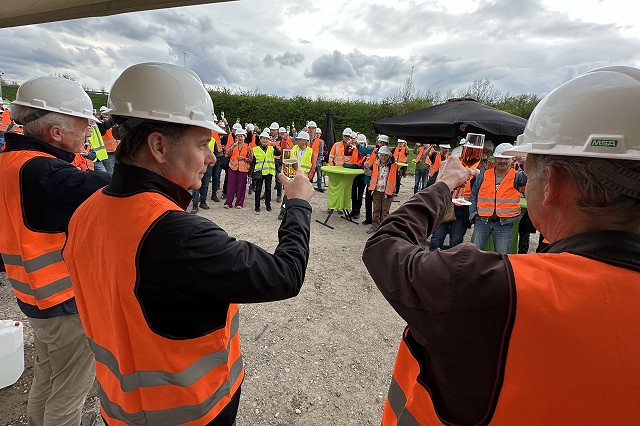 Een toast op de start van de bouw, met wethouder Claassen en Remco Reijke (voorzitter coöperatie Bommelerwaar).