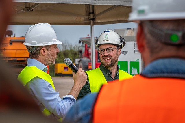 Tijmen Keesmaat in gesprek met Stan Reinders, die de bouw van het windpark begeleidt. Foto: Christine Wevers