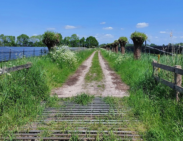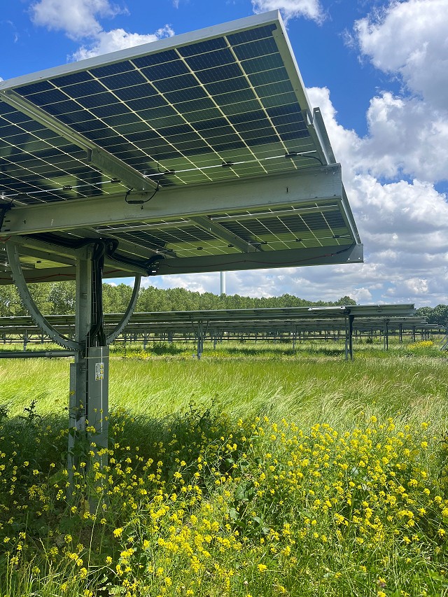 - Biodiversiteitsmaatregelen, zoals het aanleggen van bloemrijke randen, begroeiing tussen de panelen, bodem verbeterende maatregelen, poelen voor amfibieën of nestplaatsen voor vogels.