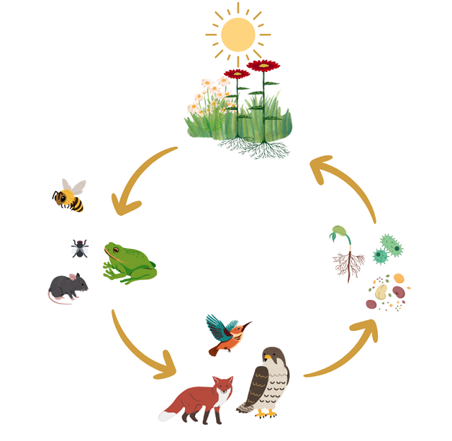 In een natuurinclusief ontwerp zijn er meerdere manieren waarop je deze trofische cascade kunt stimuleren. We onderscheiden vier ontwerpprincipes: